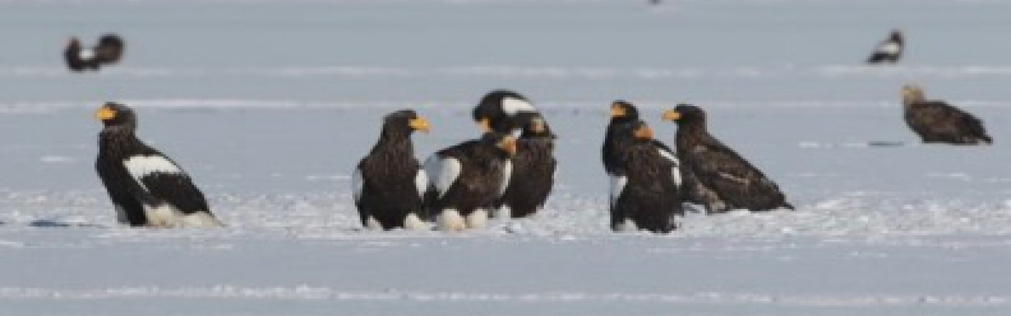 最終日は、根室でのワイルドライフツアーを半日間楽しんで終了です。ご要望があれば早朝散歩を兼ねてシマエナガなどの小鳥を見に行くツアーも可能です。チェックアウト後は氷結した風蓮湖へ。地元漁師の伝統漁法を見学し、そこに集まるオオワシとオジロワシの群れが大空を舞う光景は、この旅のラストを飾るにふさわしい圧倒的な光景です。昼食をとった後は、12時に根室を出発して車で90分の根室中標津空港へ。13 時30分にツアーは終了となり、そこでガイドや仲間との別れとなります。